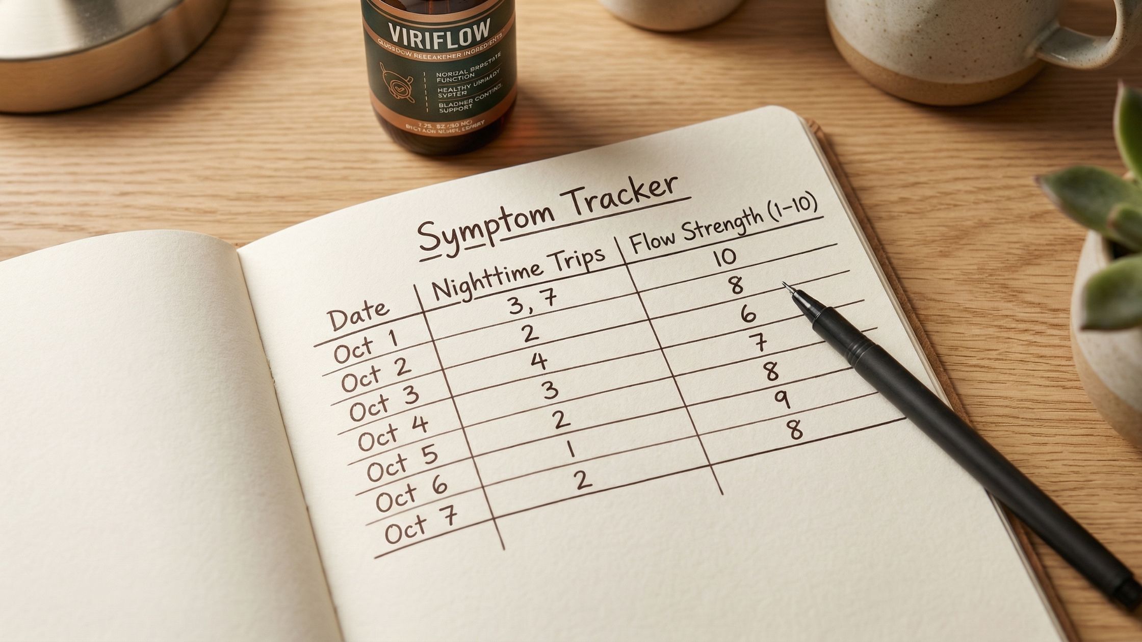 Track your symptoms (nightly trips, flow strength, urgency)